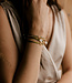 Armband aus weichem olivgrünem Cord mit einem weißen Glasstein und (vergoldeter) Bearbeitung. Das Armband ist leicht in der Größe verstellbar.