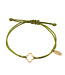 Schöne Armbändchen aus weichem Seil in der Farbe Grün mit einem Kleeblatt. Das Kleeblatt ist aus (vergoldetem) Edelstahl, also verblasst es nicht!