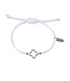 Schönes Armband aus weichem Seil in der Farbe Weiß mit einem Kleeblatt. Das Kleeblatt ist aus Edelstahl, also verliert es nicht die Farbe!