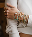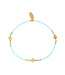 Armband aus elastischem Material mit (vergoldeten) Edelstahlperlen und charm. Die Armbandgröße ist für ein Handgelenk von 16 bis 18,5 cm eng gemessen. Das Material bleibt auch nach dem Duschen schön. Abnehmen ist natürlich immer besser.