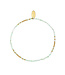 Armband aus elastischem Material mit (vergoldeten) Edelstahlperlen und charm. Die Armbandgröße ist für ein Handgelenk von 16 bis 18,5 cm eng gemessen. Das Material bleibt auch nach dem Duschen schön. Abnehmen ist natürlich immer besser.