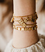 Armband aus elastischem Material mit Perlen aus (vergoldetem) Edelstahl und schönen Blumen. Die Armband ist für einen Handgelenksumfang von 16 bis 18,5 cm eng bemessen. Das Material bleibt auch nach dem Duschen schön. Es ist natürlich immer besser, es abz