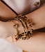 Armband aufgefädelt auf Elastik. Die Perlen sind aus echtem Edelstahl. Die Zwischenelemente sind aus dem Edelstein Picture Jaspis. Die Armband ist für einen Handgelenkumfang von 17 bis 18,5 cm. Entspricht der Größe M.