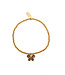 Armband aus elastischem Material mit Perlen aus (vergoldetem) Edelstahl und schönen Blumen. Die Armband ist für einen Handgelenksumfang von 16 bis 18,5 cm eng bemessen. Das Material bleibt auch nach dem Duschen schön. Es ist natürlich immer besser, es abz