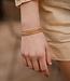 Das Armband ist aus (vergoldetem) Edelstahl gefertigt. Es besteht aus hochwertigen Materialien, aber achten Sie auf Produkte wie Parfum, Sonnencreme und Bodylotion. Für ein Handgelenkmaß zwischen 16 und 18,5 cm. Dieses Armband ist in der Größe verstellbar