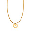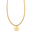 Diese luxuriöse Kette ist aus Perlen aus vergoldetem Edelstahl gefertigt. Diese Perlen sind auf Draht aufgezogen. Die Gesamtlänge beträgt 40 cm. Die Kette kann um 5 cm verlängert werden. An der Kette hängt ein Münzstück mit einem Durchmesser von 15 mm mit