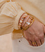 Armband aus luxuriösen großen Würfelperlen. Der Verschluss besteht aus vergoldetem Edelstahl. Für ein Handgelenkmaß zwischen 16 und 18,5 cm. Das Armband ist verstellbar. Aus hochwertigen Materialien, aber Vorsicht beim Kontakt mit Produkten wie Parfüm, So