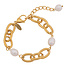 Luxuriöses Armband mit echten Süßwasserperlen und einem Glied. Hergestellt aus (vergoldetem) Edelstahl. Das Armband ist für einen Handgelenkumfang zwischen 16,5 und 18 cm gemacht. Aus hochwertigen Materialien, aber seien Sie vorsichtig mit Produkten wie P