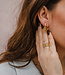 Ohrringe aus vergoldetem Messing. Hochwertiges Material, jedoch Vorsicht bei Kontakt mit Produkten wie Parfüm, Sonnencreme und Bodylotion. Ohrringe haben einen sehr feinen Verschluss. Sie sind mit einem Herz aus schwarzen Steinen verziert. Gesamtlänge: 2c