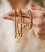 Bracelet threaded on elastic with beads of (gold-plated) stainless steel and small hearts. The bracelet is snugly measured for a wrist size of 16 to 18.5 cm. The material remains nice even after showering. However, it is always better to take it off.