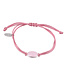 Armbandje gemaakt van zacht koord in het roze met steen roze van glas met (verzilverd) bewerking. Armbandje is makkelijk verstelbaar in maat.