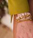 Bracelet threaded on elastic with beads of (gold-plated) stainless steel and a beautiful charm. The bracelet is designed for a wrist size of 16 to 18.5 cm when measured snugly. The material remains nice even after showering. Of course, it's always better