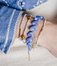 Bracelet made of aquamarine beads in blue. The bracelet fits a wrist size measured snugly from 16 to 18.5 cm. Made of high-quality materials, but be careful with products such as perfume, sunscreen, and body lotion.