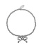 Bracelet strung on elastic with beads made of (gold-plated) stainless steel and a bow. The bracelet is snugly measured for a wrist size of 16 to 18.5 cm. The material stays nice even after showering. Of course, it's always better to take it off.