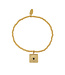 Bracelet threaded on elastic with beads of (gold-plated) stainless steel and a beautiful charm. The bracelet is tightly measured for a wrist size of 16 to 18.5 cm. The material remains nice even after showering. However, it is always better to take it off
