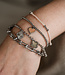 Bracelet threaded on elastic with beads of (gold-plated) stainless steel with a heart. Bracelet is measured snugly for wrist sizes of 16 to 18.5 cm. Material stays beautiful even after showering. Taking it off is of course always better.