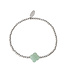 Bracelet threaded on elastic with beads of (gold-plated) stainless steel and a beautiful charm. The bracelet is designed for a wrist size of 16 to 18.5 cm when measured snugly. The material stays nice even after showering, but it's always better to take i