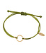 Beautiful bracelet made of soft silk cord in the color green with a circle. The circle is made of (gold-plated) stainless steel, so it won't discolor!