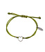 Beautiful bracelet made of soft silk cord in the color green with a heart. The heart is made of stainless steel and therefore does not tarnish!