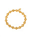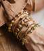 Bracelet threaded on elastic with luxury beads made of (gold-plated) stainless steel. The bracelet is tightly measured for wrist sizes from 16 to 18.5 cm. The material remains beautiful even after showering. Taking it off is of course always better.