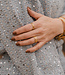 Luxury ring made of stainless steel (gold-plated). This ring does not tarnish and is adjustable. Made of high-quality materials, but be careful with products like perfume, sunscreen, body lotion, etc.