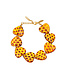 Bracelet made of luxurious large heart beads. The clasp is made of gold-plated stainless steel. Suitable for a wrist size between 16 and 18.5 cm. The bracelet is adjustable. Made of high-quality materials, but be careful with products such as perfume, sun
