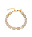 Bracelet of luxurious large oval gray beads. The clasp is made of gold-plated stainless steel. Suitable for a wrist size between 16 and 18.5 cm. The bracelet is adjustable. Made of high-quality materials, but be careful with products such as perfume, suns