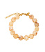 Bracelet made of luxurious large cube beads. The clasp is made of gold-plated stainless steel. Suitable for a wrist size between 16 and 18.5 cm. The bracelet is adjustable. Made of high-quality materials, but be careful with products such as perfume, suns