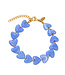 Bracelet made of luxurious large heart beads. The clasp is made of gold-plated stainless steel. Suitable for a wrist size between 16 and 18.5 cm. The bracelet is adjustable. Made of high-quality materials, but be careful with products such as perfume, sun