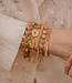 Luxury bracelet made of (gold-plated) stainless steel. The bracelet is designed for a wrist size between 16.5 and 18 cm. Made of high-quality materials, but be careful with products such as perfume, sunscreen, and body lotion.