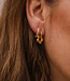 Earrings made of gold-plated brass. High-quality material, but be careful with products like perfume, sunscreen, and body lotion. The earrings have a very fine clasp. The earrings feature a heart with black stones. Total length: 2 cm.