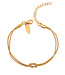 De armband is gemaakt van (verguld) edelstaal. Is hoogwaardige materialen maar kijk wel uit met producten zoals parfum, zonnebrandcrème, bodylotion.