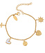 De armband is gemaakt van (verguld) edelstaal met leuke bedels. Is hoogwaardige materialen maar kijk wel uit met producten zoals parfum, zonnebrandcrème, bodylotion.