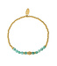 Armbandje geregen op elastiek met kraaltjes van edelstaal en een echte edelsteen.