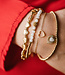 Armbandje geregen op elastiek met kraaltjes van (verguld) edelstaal en mooie bedel.