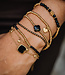 Armband geregen op elastiek. Kraaltjes zijn van (verguld) edelstaal. De tussensteentjes zijn de edelsteen zwart. Armband is voor een polsmaat 17 tot 18,5 cm. Gelijk aan maat M.