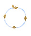 Armbandje geregen op elastiek met kraaltjes van edelsteen en met (verguld) edelstaal.