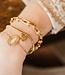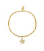 Armbandje geregen op elastiek met kraaltjes van (verguld) edelstaal en mooie bedel.