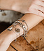 Armbandje geregen op elastiek met kraaltjes van (verguld) edelstaal.