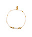 Armband geregen op elastiek. Kraaltjes zijn van (verguld) edelstaal. De tussensteentjes zijn de edelsteen Wit Agaat. Armband is voor een polsmaat 17 tot 18,5 cm. Gelijk aan maat M