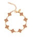 Luxe armband gemaakt van (verguld) edelstaal met klavers in de kleur champagne.De armband is gemaakt voor een polsmaat tussen de 16,5 en 18cm. Van hoogwaardige materialen maar kijk wel uit met producten zoals parfum, zonnebrandcrème, bodylotion.