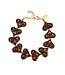 Armband van luxe grote harten kralen. De sluiting is gemaakt van verguld edelstaal. Voor een polsmaat tussen de 16 en 18,5cm. Armband is verstelbaar. Van hoogwaardige materialen maar kijk wel uit met producten zoals parfum, zonnebrandcrème, bodylotion.