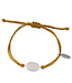 Armbandje gemaakt van zacht koord in het olijf met steen wit van glas met (verzilverd) bewerking. Armbandje is makkelijk verstelbaar in maat.