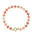 Ketting gemaakt van klaver kralen. De sluiting is gemaakt van verguld edelstaal. Totale lengte is ongeveer 44cm. Van hoogwaardig materiaal maar kijk wel uit met producten zoals parfum, zonnebrandcrème, bodylotion etc.