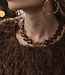 Ketting gemaakt van luxe ronde hartvormige kralen. De sluiting is gemaakt van verguld edelstaal. Totale lengte is ongeveer 44cm. Van hoogwaardig materiaal maar kijk wel uit met producten zoals parfum, zonnebrandcrème, bodylotion etc.