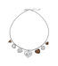 Mooie luxe ketting met verschillende hartjes bedels. De ketting is geregen op draad van edelstaal en gemaakt van (verguld) edelstalen kralen en bedels. De ketting is 42cm lang en verstelbaar met 5cm.