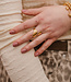 Ring luxe van edelstaal (verguld). Deze ring verkleurd niet en is verstelbaar. Van hoogwaardige materialen maar kijk wel uit met producten zoals parfum, zonnebrandcrème, bodylotion etc.